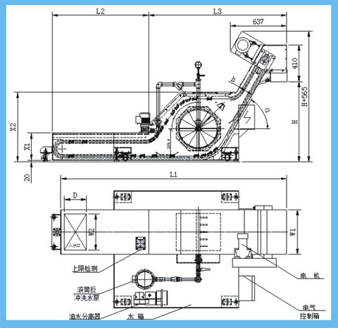 滾筒式排屑器主要用于收集和輸送小于50mm以下的切屑和切屑液過濾系統(tǒng)。廣泛應(yīng)用于各類數(shù)控機床加工中心和碎性生產(chǎn)線等自動化程度較高的機床。也是組合機床冷卻液處理系統(tǒng)的主要排屑功能部件。該設(shè)備工作運轉(zhuǎn)平穩(wěn)、無噪音并配有機械過載保護和電器過載發(fā)訊保護裝置,起到改善操作環(huán)境,減輕勞動強度,提高整機自動化程度的作用。是現(xiàn)代化工業(yè)生產(chǎn)中必不可少的機床輔機。